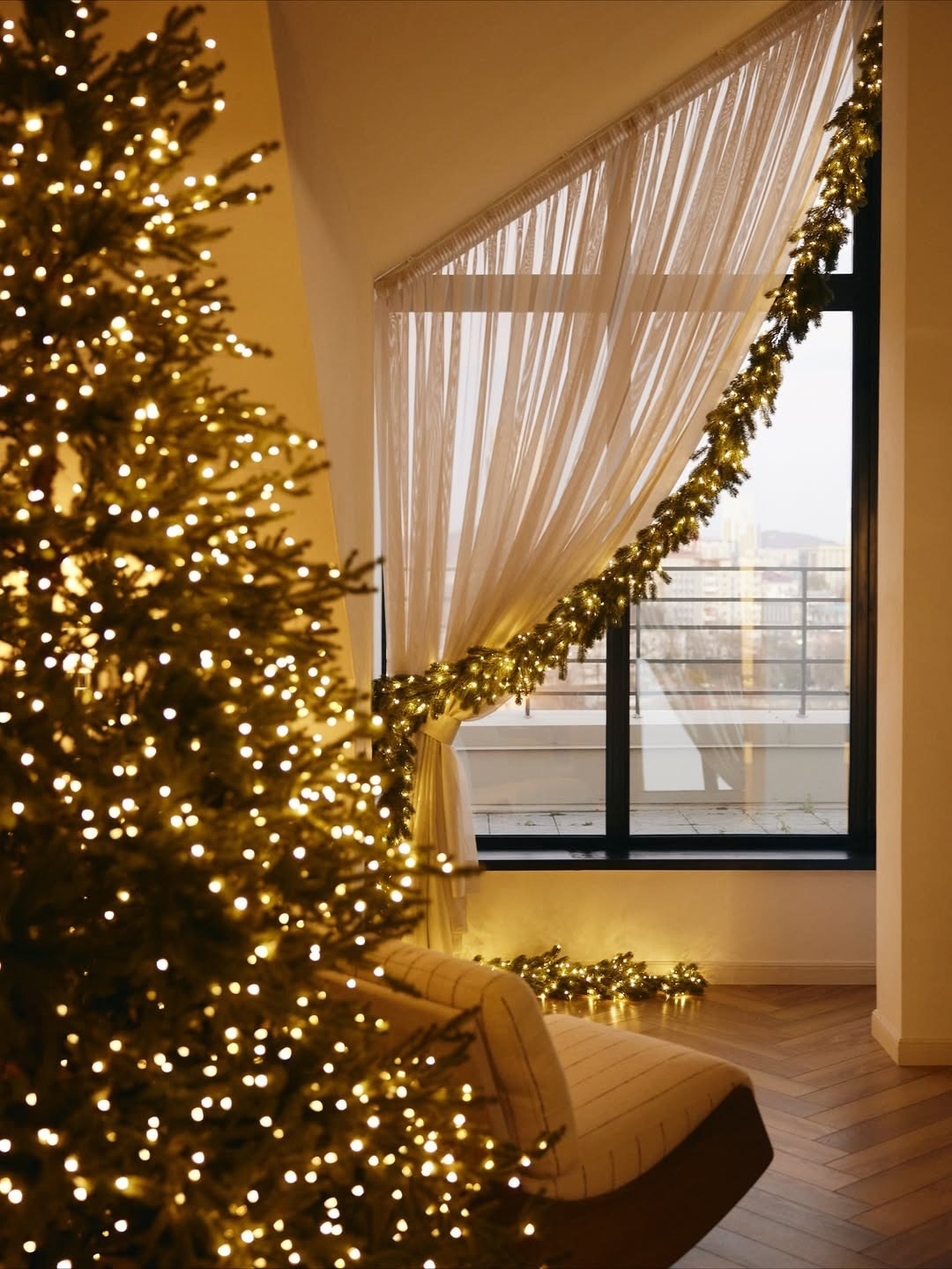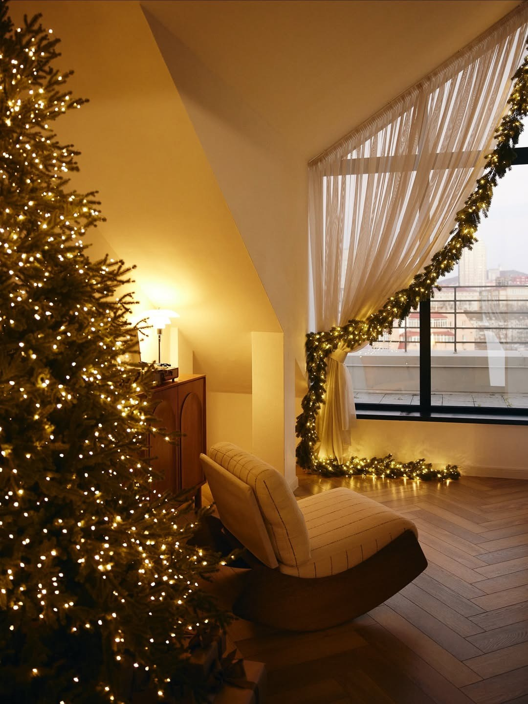 Стильный интерьерный зал, очень много естественного света, эстетичный паркет, необычная кожаная мебель, бумажные и тканевые фоны, выход на террасу с видом на город. Прямые солнечные лучи до 12:00. Все остальное время в зале ровный мягкий свет.
